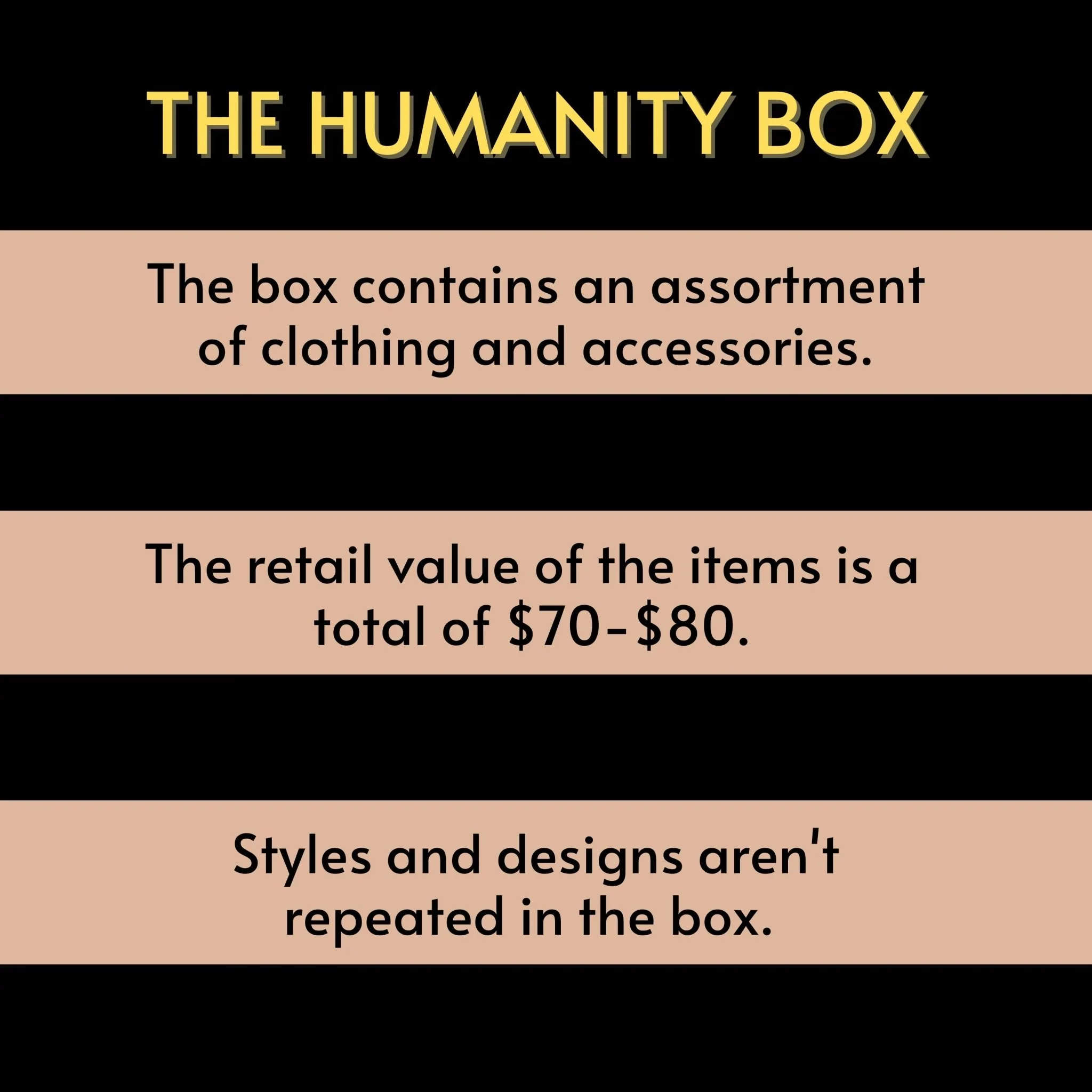 The Wear The Peace $50 Mystery Box is packed with awesome surprises! With a value of $70-$80, not only are you getting a great deal on the most comfortable clothing, but you're also giving back to humanity.