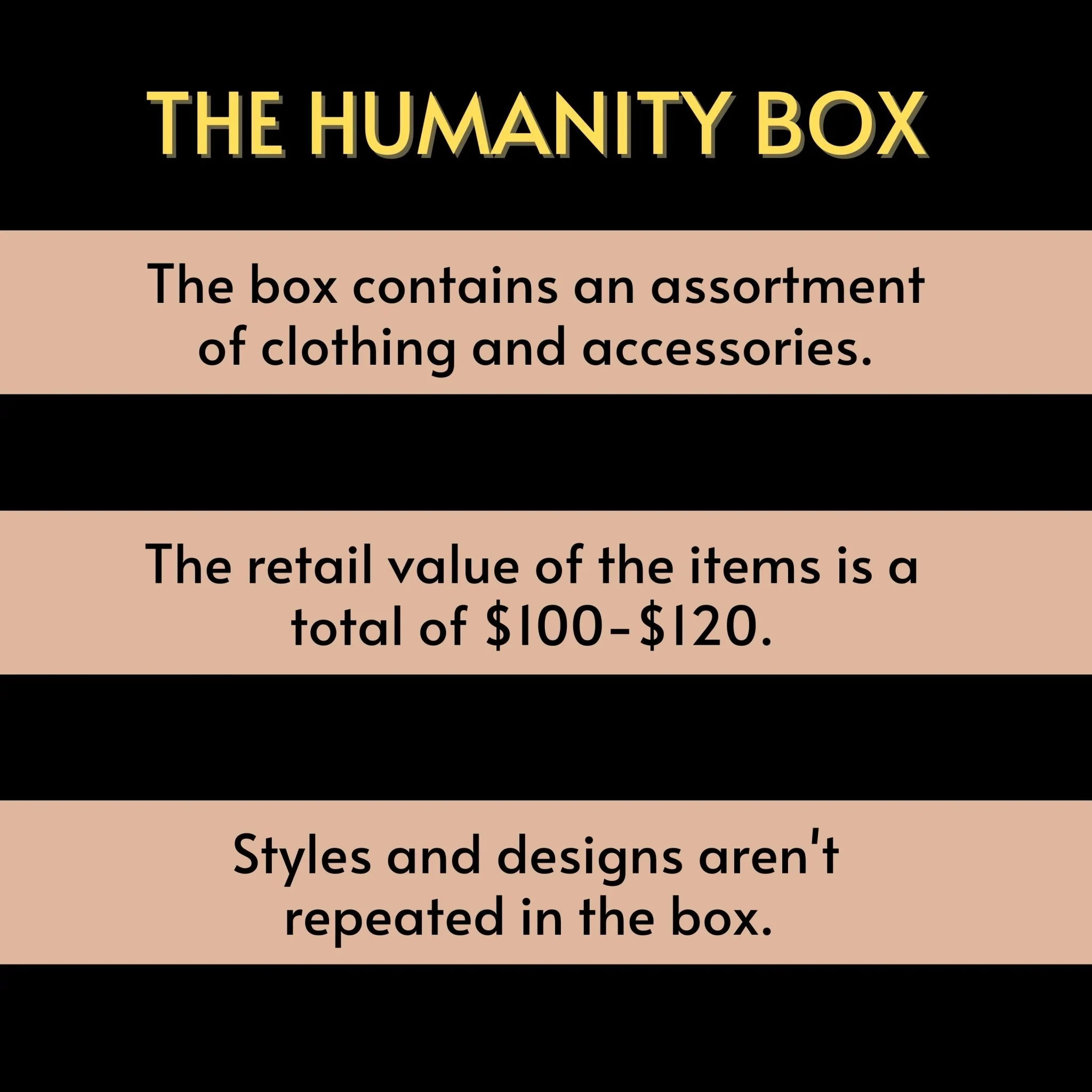 The Wear The Peace $75 Mystery Box is packed with awesome surprises! With a value of $100-$120, not only are you getting a great deal on the most comfortable clothing, but you're also giving back to humanity.